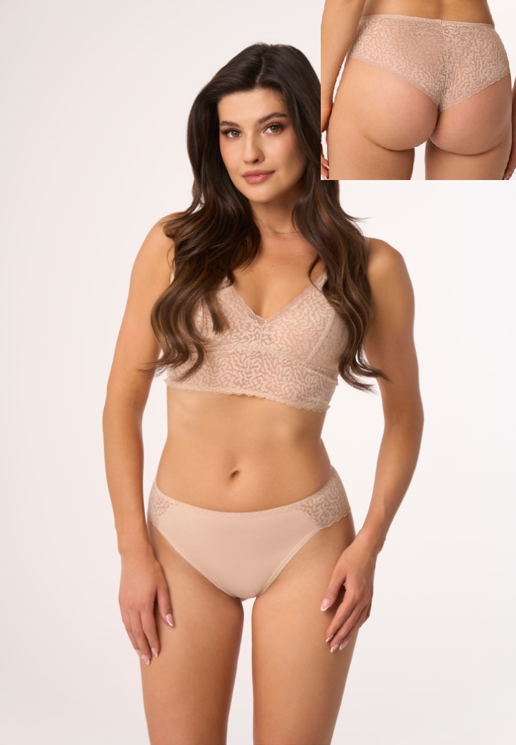 Dámské kalhotky jsou vyrobené z velmi kvalitní a jemné bavlny. Zadní díl a boky modelu je vyrobený z efektní krajky s květinovým motivem. Baleno v krabičce.