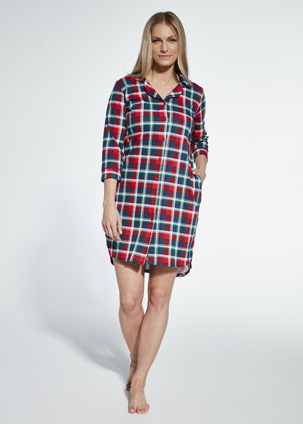 Dámská károvaná propínací bavlněná noční košile s 3/4 rukávem. Baleno v dárkové krabičce.