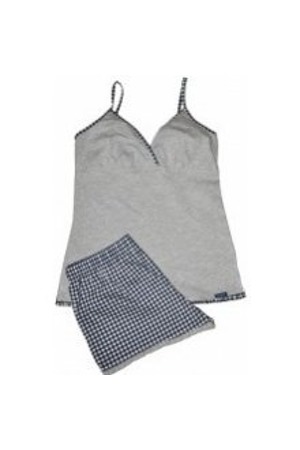 Dámské elegantní bavlněné pyžamo. Horní díl s ramínky na "špagetky", knoflíčky a celopotiskem. Spodní díl v šortkovém střihu. Baleno v dárkové krabičce.