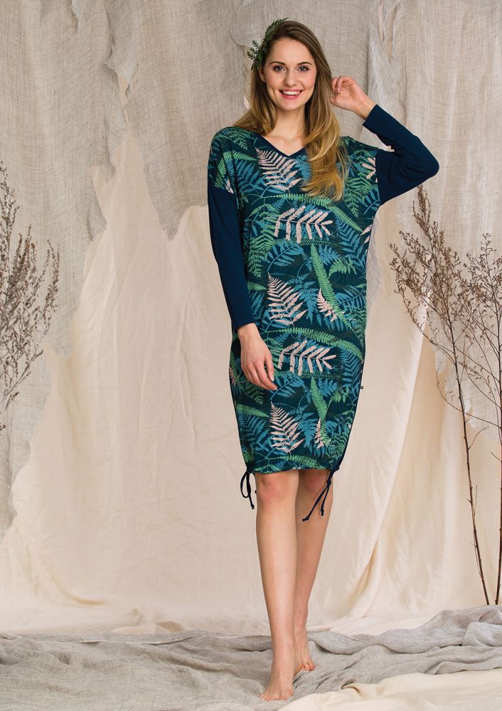Dámské šaty s dlouhými rukávy, potiskem atraktivního vzoru a stahováním spodního lemu. Baleno v transparentním balu.