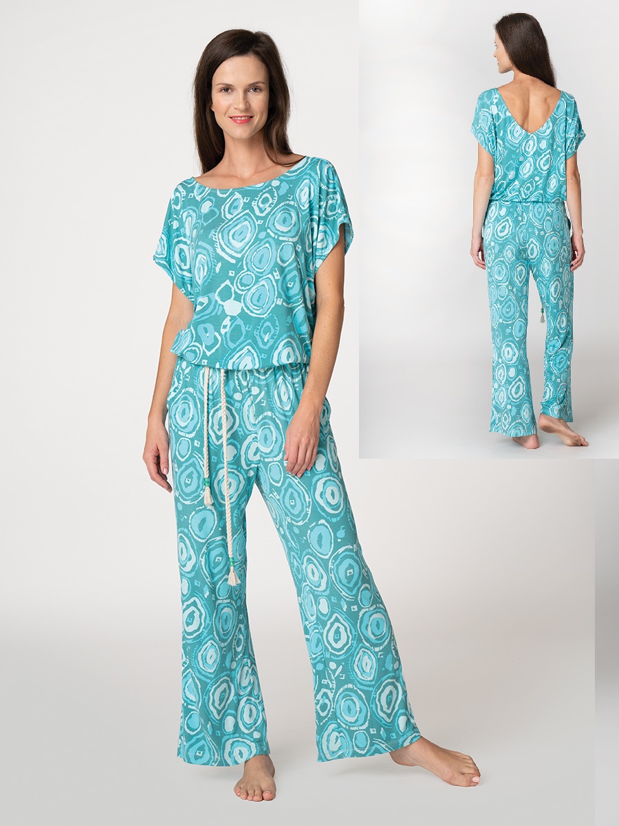 Dámský overal s krátkým rukávem je vyroben z extrémně jemného bambusového úpletu má antibakteriální a antialergické vlastnosti materiálu. Overal je volného střihu a větším výstřihem na zádech. V pase pohodlná guma a ozdobný pásek, na bocích overalu jsou kapsy. Baleno v transparentním obale.