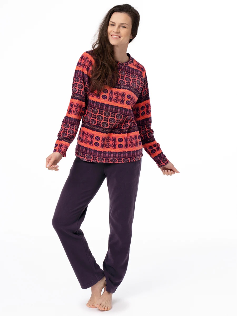 Dámský domácí komplet vyroben z hřejivého, vysoce měkkého mikrofleecového materiálu. Mikina má dlouhý rukáv a kalhoty jsou dlouhé, hladké s kapsami. Baleno v transparentním obalu.