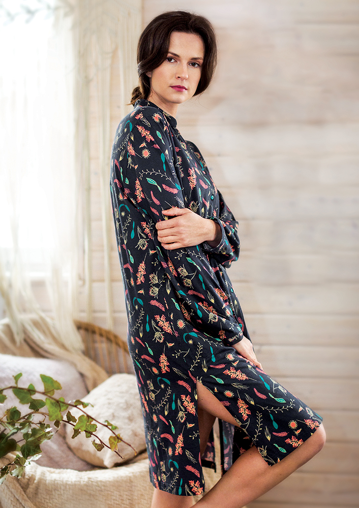 Dámská noční košile klasického střihu vyrobená z kvalitní bavlny. Košile se zapíná na knoflíky dlouhé rukávy, boční rozparky a kapsy. Košilku lze nosit na spaní i na domácí lenošení. Baleno v transparentním obale.