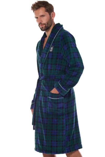 Pánský župan vyroben z měkké pleteniny se vzorem. Župan je dlouhý má šálový límec. Baleno v transparentním obalu.