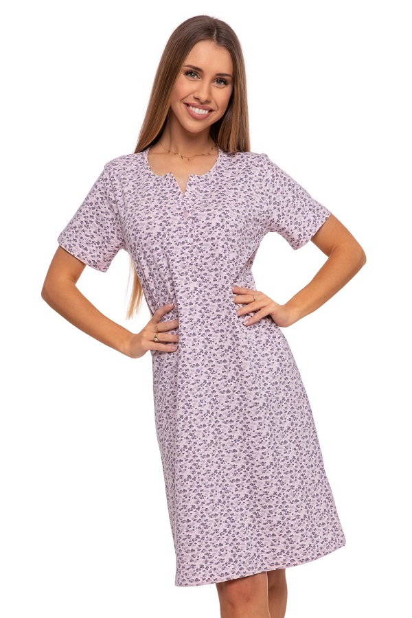 Dámská bavlněná noční košile s krátkým rukávem je ideální volbou pro ženy, které potřebují pohodlné oblečení na spaní. Vyrobeno z měkké a na dotek příjemné bavlny, poskytuje pohodlí a svobodu pohybu. Přední díl na tři knoflíky. Baleno v transparentním obalu.