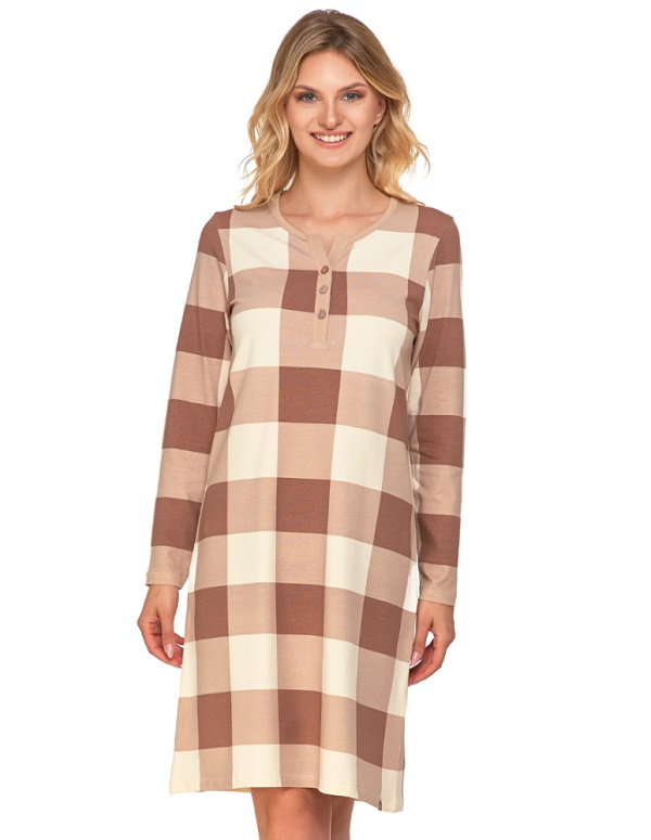 Dámská bavlněná noční košile s dlouhým rukávem je ideální volbou pro ženy, které potřebují pohodlné oblečení na spaní. Vyrobeno z měkké a na dotek příjemné bavlny, poskytuje pohodlí a svobodu pohybu. Přední díl na tři knoflíky. Baleno v transparentním obalu.