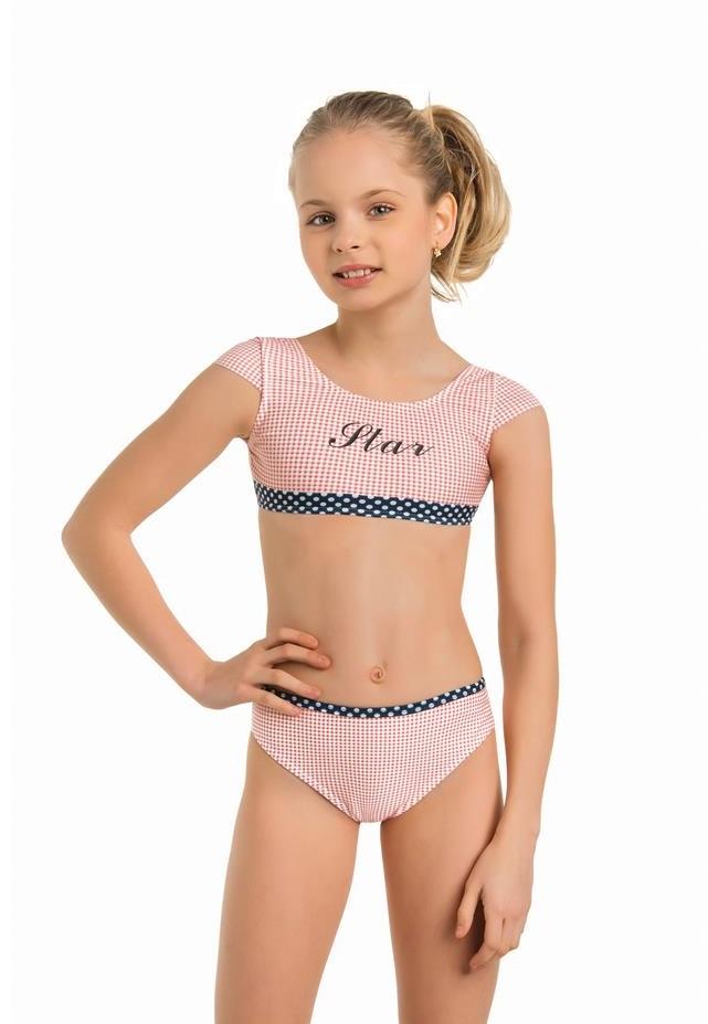 Dívčí dvoudílné plavky mají horní díl plavek na širší ramínka. Plavky jsou vyrobeny z rychleschnoucího materiálu. Baleno v transparentním obale.