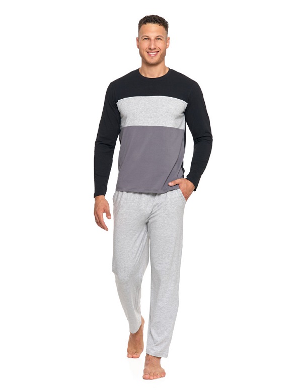 Pánské pyžamo je vyrobeno z nejkvalitnější bavlny s příměsí elastanu a zajišťuje měkkost a dobrou cirkulaci vzduchu. Dlouhé kalhoty s elastickou manžetou zaručují pohodlné nošení, mají kapsy. Horní díl pyžama má dlouhý rukáv a kulatý výstřih. Baleno v transparentním obalu.