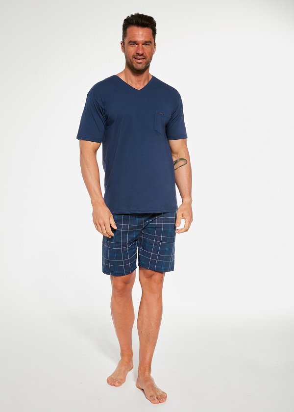 Pánské pyžamo vyrobeno z kvalitní bavlny. Horní díl s výstřihem do véčka, krátkými rukávy a kapsičkou. Kostkované krátké kalhoty. Baleno ve stylové krabičce.