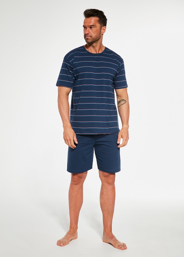 Pánské pyžamo vyrobeno z kvalitní bavlny. Horní díl s kulatým výstřihem a krátkými rukávy. Jednobarevné krátké kalhoty. Baleno ve stylové krabičce.